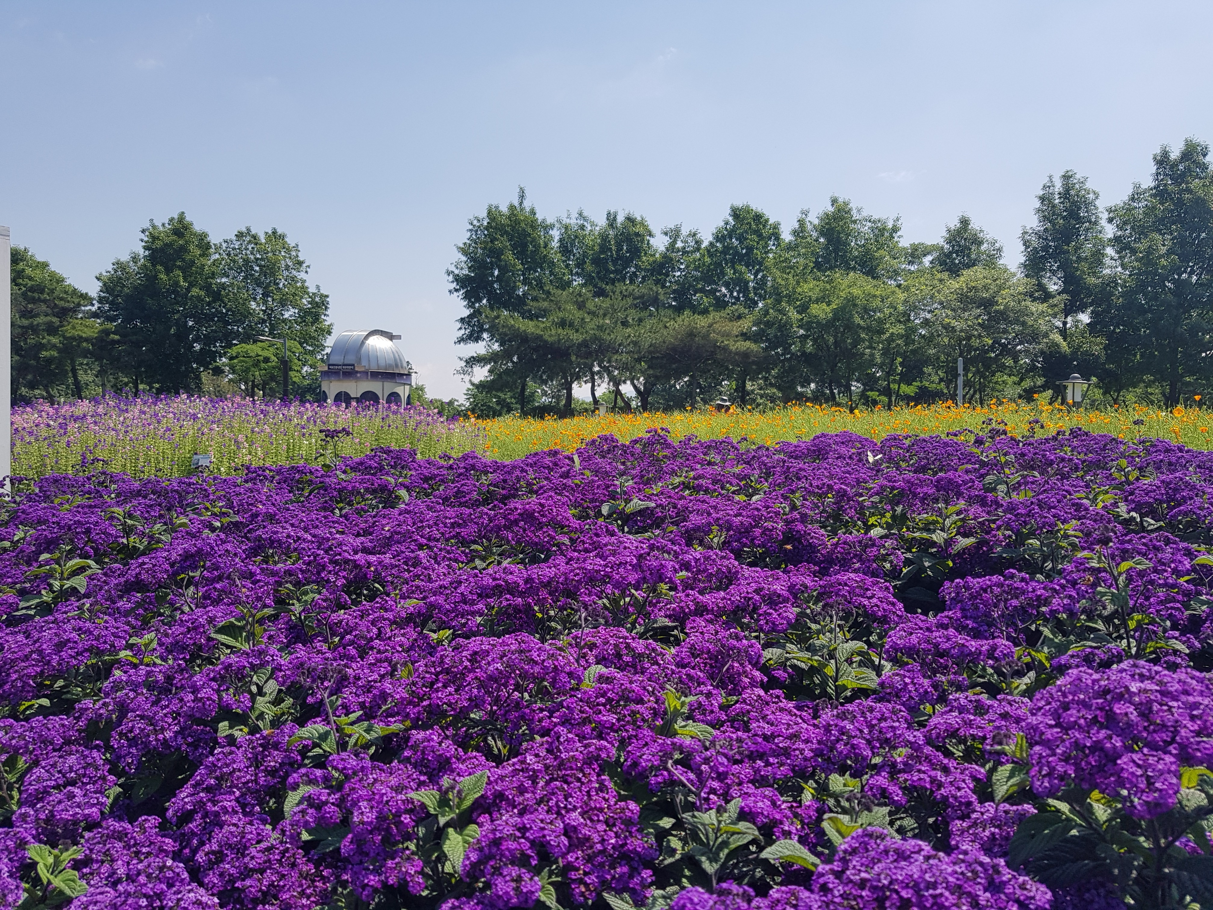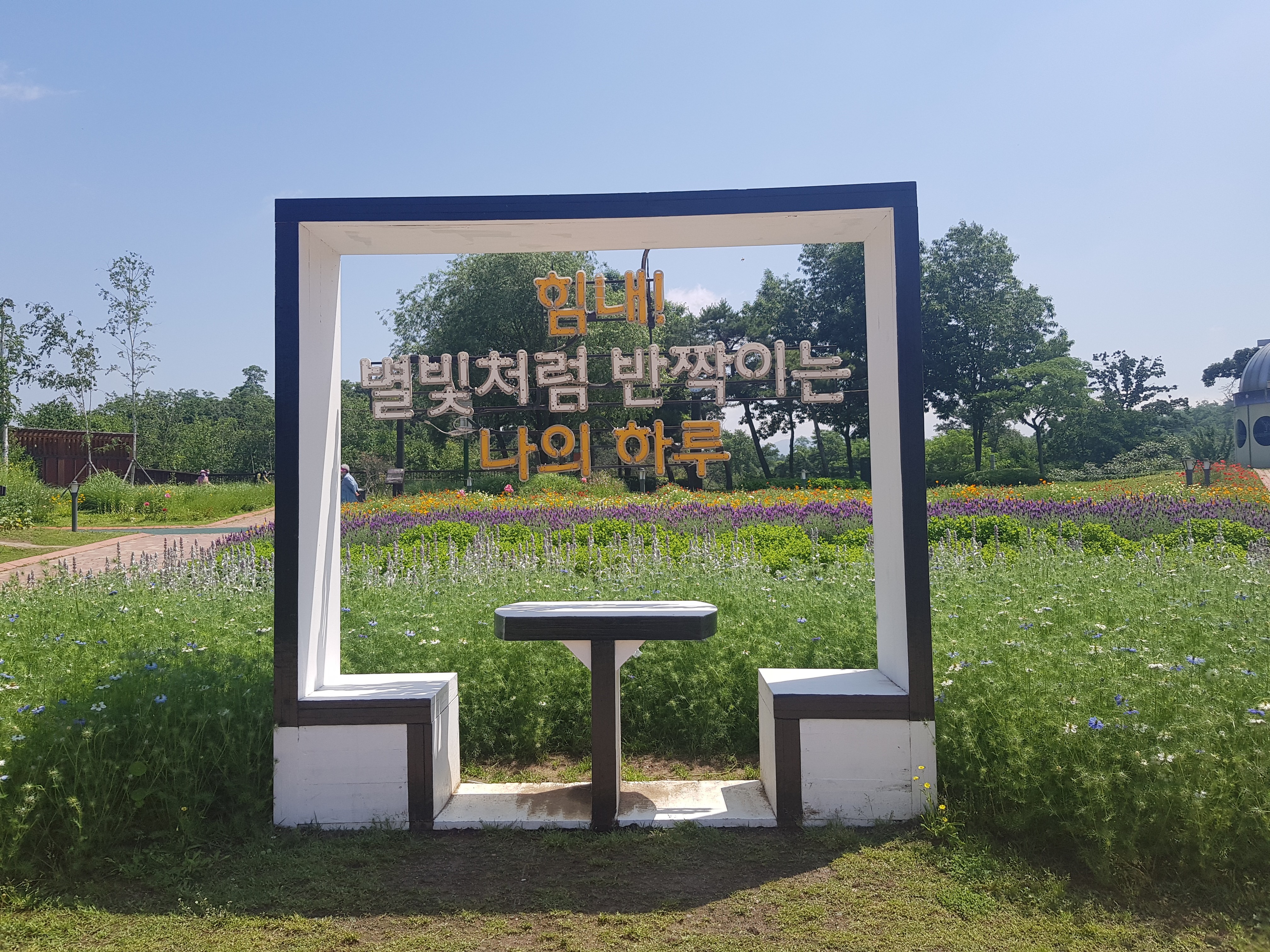 강동구 둔촌동 소재에 있는 일자산 허브천문공원은 24시간 이용가능한 천문대가 있습니다. 산책로와 조깅코스가 있어서 산책나온 시민들이 많았습니다. 특히 밤에는 천문대를 통해 별자리를 볼 수 있어서 서울 이색 데이트 코스로 좋습니다. 그리고 현재 라벤더, 카모마일, 황화코스모스, 꽃양귀비, 캘리포니아포피 등 다양한 꽃과 허브가 가득해서 어디를 찍어도 셀카 맛집입니다.