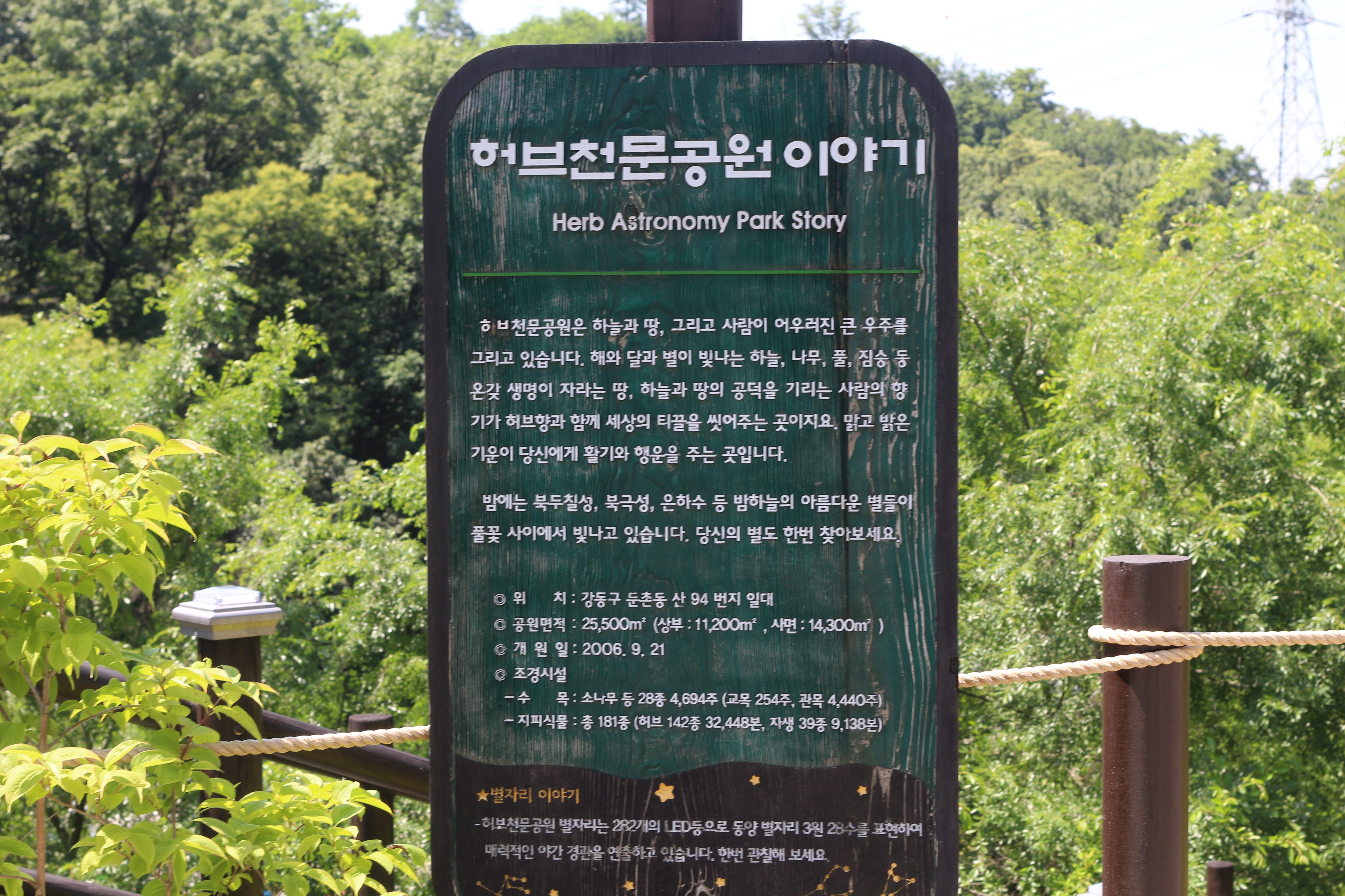 허브공원 이용은 무료입니다. 120여 종의 허브와 약용식물, 자생식물 등이 있습니다. 공원 면적이 25500㎡ 이며 개원일이 2006년이라고 하니 꽤 오랫동안 운영되고 있는 공원입니다. 특히 밤에는 태양, 달, 별 등 천체를 관측할 수 있는 천문대가 있습니다. 공원바닥에 설치된 조명으로 별자리를 연출하고 있고 색도 수시로 변한다고 하니 서울 밤데이트로 즐기기에 환상적인 공간이기도 합니다.