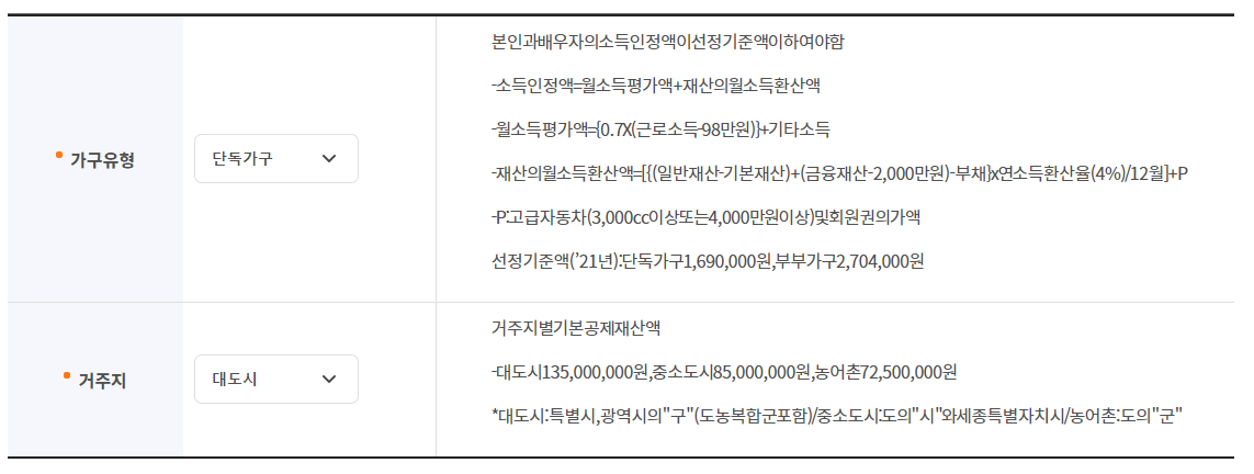 | 2021년 중위소득 | 182만7831 | 308만8079 | 398만3950 | 487만6290 | 575만7373 | 662만8603 |